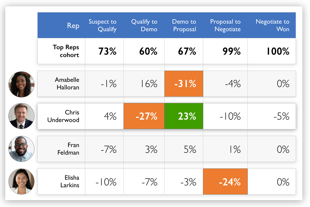 Yes, we identify rep performance gaps and track data in real time to ensure they are building and progressing their pipeline at the right velocity.
